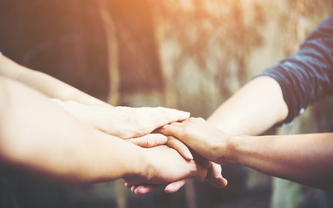 Teamwork standing hands together.