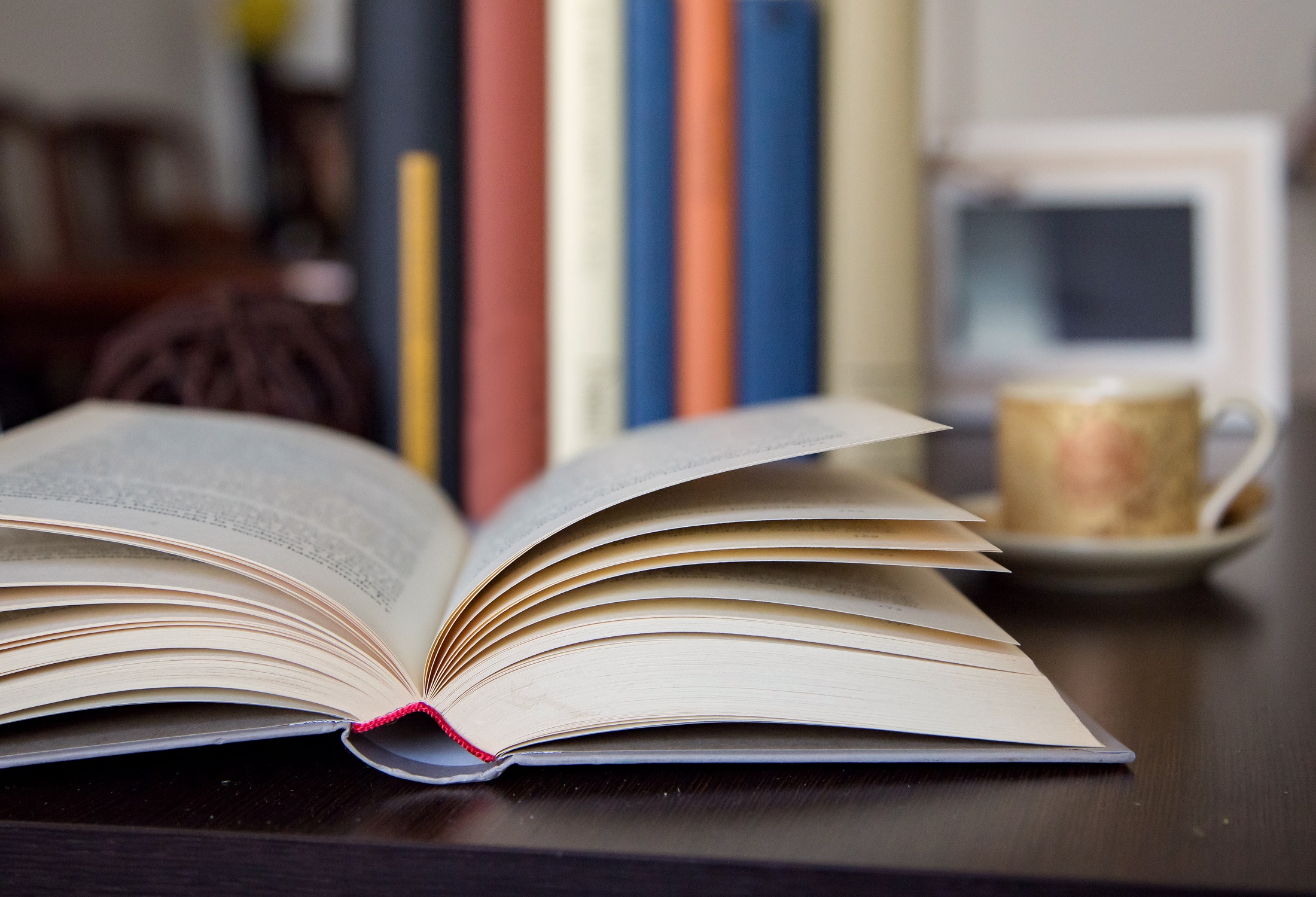 open book on wooden table detail with space to write